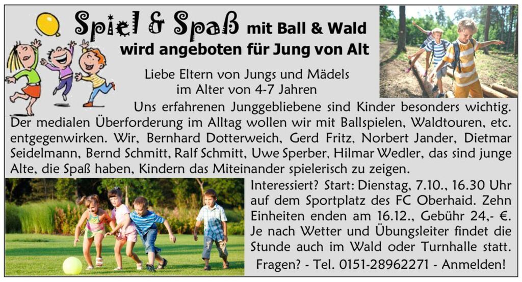 📍 Sportplatz des FC Oberhaid (je nach Wetter auch Wald oder Turnhalle)
